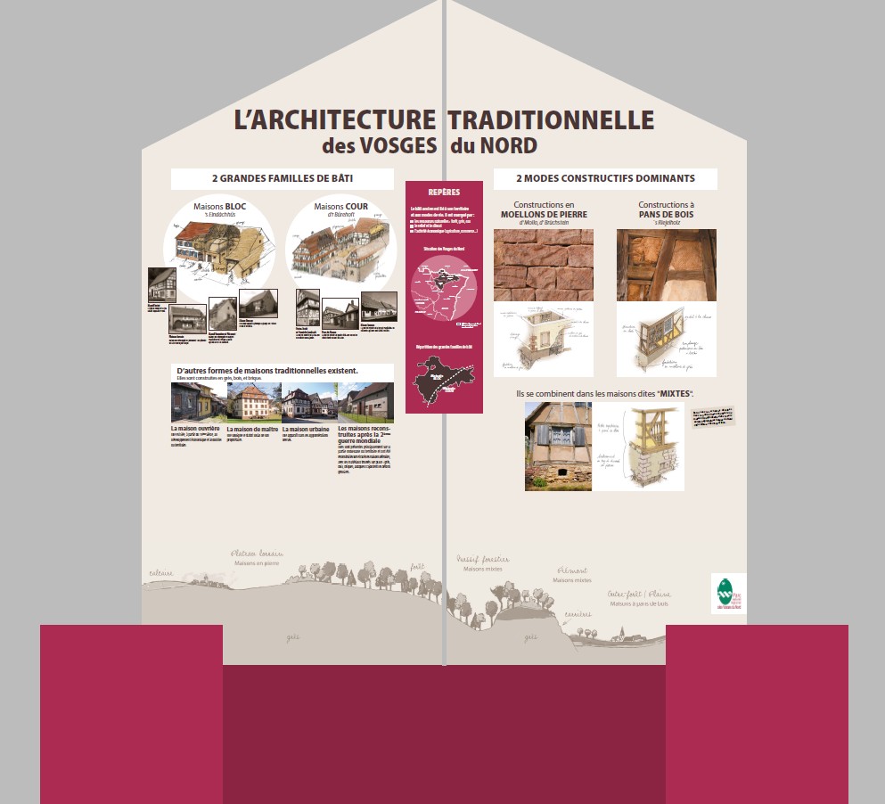 Une exposition itinérante à votre disposition pour toutes vos actions de médiation autour de la question du patrimoine bâti dans les Vosges du Nord.