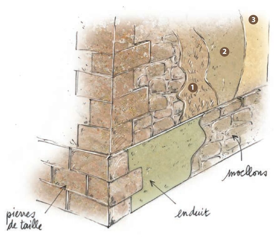 Liant utilisé dans l’art de construire depuis les Romains, la chaux naturelle sert à la fois à la consolidation des maçonneries (mortier) et à leur décoration (enduit).
