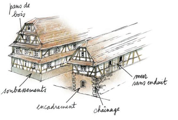 L’enduit au mortier de chaux naturelle employé sur le bâti ancien est appliqué autant sur une maçonnerie en pierre que sur le torchis qui constitue le remplissage du pan de bois. Ses fonctions sont les suivantes :
