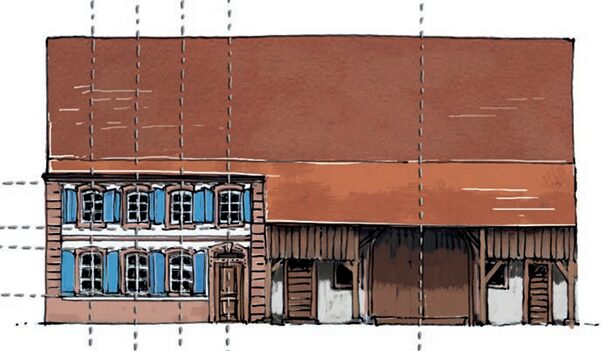 Les ouvertures de l’habitation sont le plus souvent alignées horizontalement et verticalement selon un axe de symétrie, contrairement aux ouvertures de la grange qui suivent un ordre plus aléatoire en fonction des usages des espaces intérieurs.
