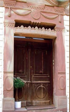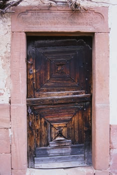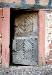 Ce sont des éléments forts du bâti, seuls passages entre la rue et l’espace privé, constitués d’une porte piétonne et d’une porte charretière. Dans cet exemple du Pays de Hanau, le travail du bois et de la pierre représente la richesse des propriétaires.