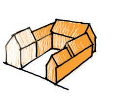 Ces maisons sont composées de plusieurs bâtiments, distincts selon leur fonction, réunis autour d’une cour fermée. Des annexes peuvent être construites, de manière juxtaposée, en fonction des besoins de l’activité.