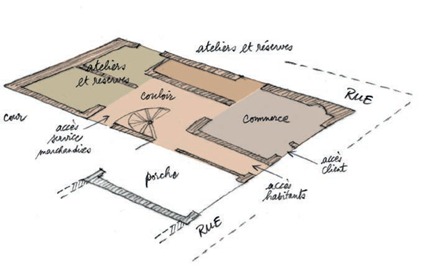 La maison regroupant l’artisan et le marchand, constitue alors l’unité de base de la ville.