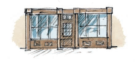 Ce procédé, rapporté sur la façade, s’est généralisé et perfectionné pour aboutir à la véritable devanture : cadre qui fait saillie sur la maçonnerie qui habille l’ensemble la boutique.
