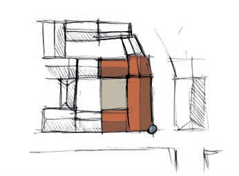 La partie publique, côté rue, se différencie de la partie privée à l’arrière (cour commune) par ses fonctions et son traitement architectural.