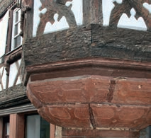 La boutique du Moyen Age comporte sur rue une porte à un vantail. A côté, une baie, faisant office de vitrine ouverte, est fermée le soir par des volets de bois.