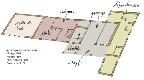 Plusieurs annexes ont été rajoutées aux bâtiments originels en fonction des besoins des habitants. Au cours du temps, l’exploitation agricole est devenue, un restaurant, une maison d’habitation, … Actuellement les dépendances sont aménagées en logement.