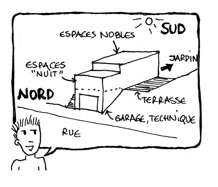 Faire une esquisse de programme : commencez à réfléchir à ce que vous voulez, à ce que vous aimez, comment vous vivez, comment vous utilisez l’espace de votre habitation, comment vous voulez profiter de l’extérieur…