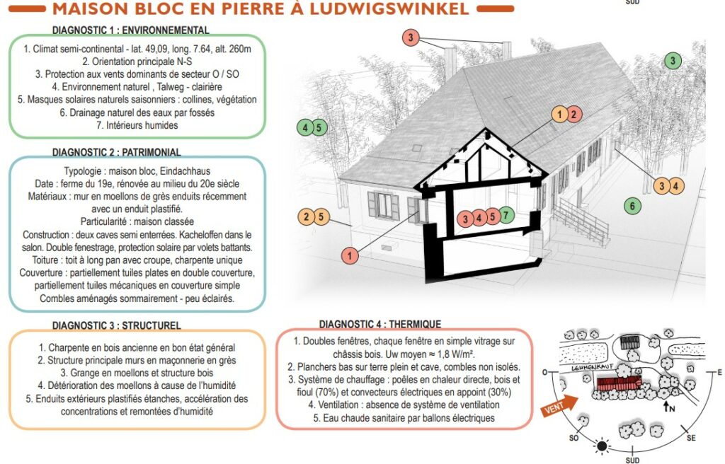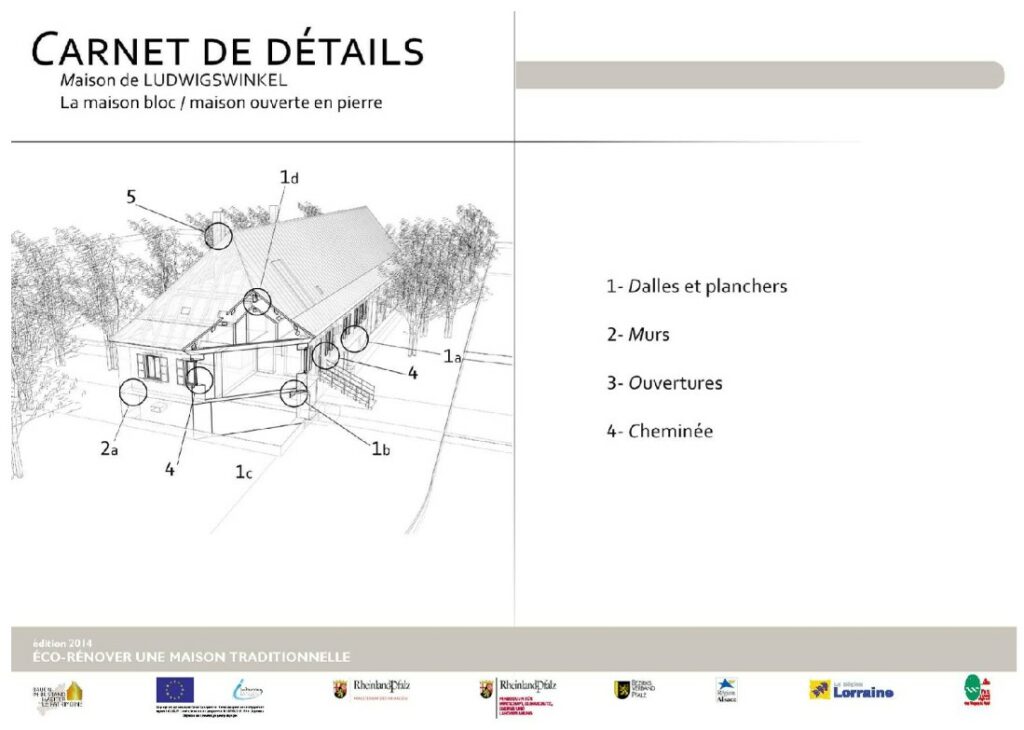 Cette page regroupe les PDF des solutions proposées suite à l’étude globale réalisée dans le cadre du projet interreg 4 sur l’éco-rénovation. Le bâtiments étudié est une maison bloc en pierre, construite à Ludwigswinckel en Allemagne. Il a été choisi car il est particulièrement représentatif des maisons bloc.
