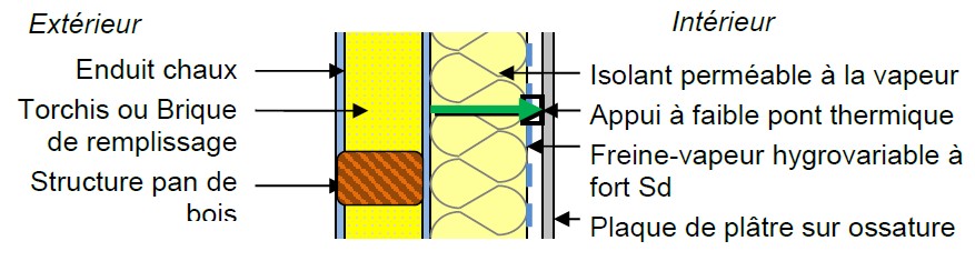 Le choix du matériau isolant devra être adapté afin de conserver les échanges hygrométriques existants pour la pérennité du bâtiment et ne pas aggraver les pathologies liées à l’humidité.