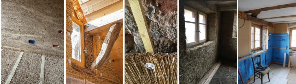- des enduits de finitions à base de terre, de chaux, mélangé avec des fibres
