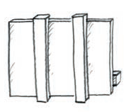 Bardeaux fendus et resciés : fendus puis resciés en biais pour donner deux éléments de forme plus épaisse à un bout et très fine à l’autre, avec une face éclatée(à mettre dessus) et l’autre plane.