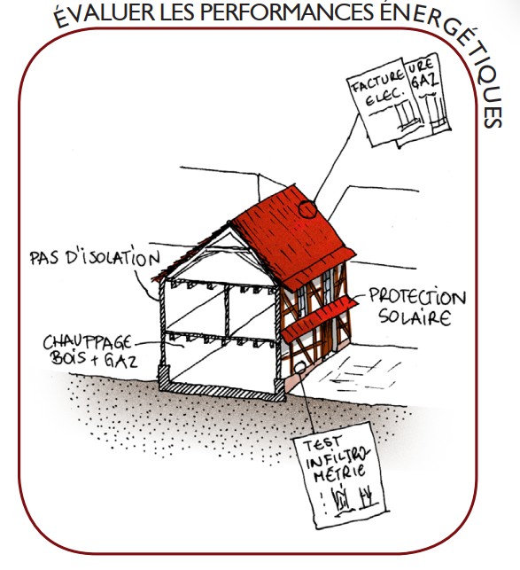 - Parties courantes : grès, torchis, bois, entre couches, isolants, pare vapeur, enduits,