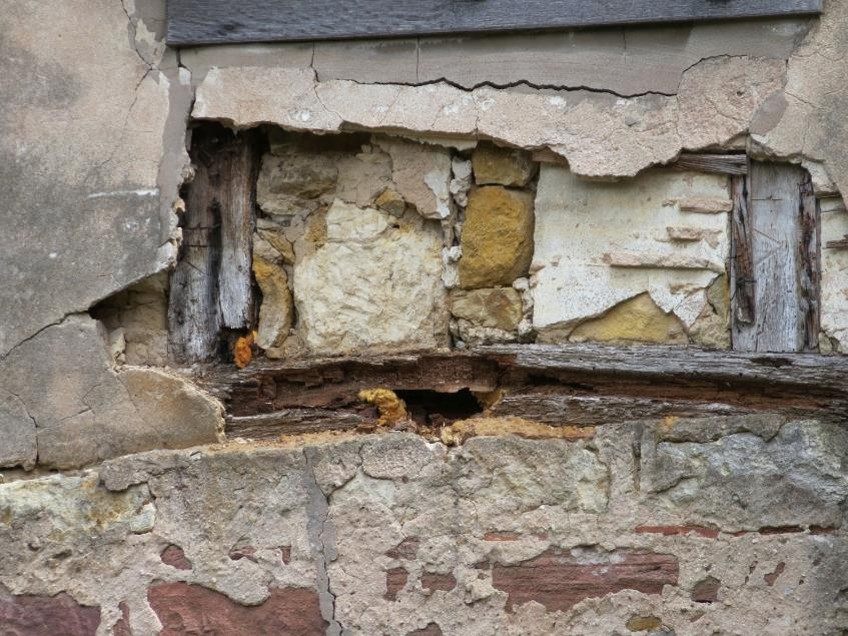 Les interventions modernes, les changements de destinations, la vacance ou l’usage intermittent de l’immeuble, le manque de ventilation et d’entretien, la présence anormale d’eau dans les parois (capillarité, fuites, condensations), les mouvements de sols, sont les principales causes de dommages structurels. La réhabilitation doit intégrer les actions nécessaires à leur traitement définitif.