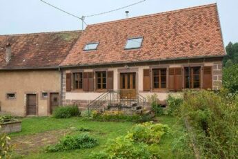 Cette maison a été construite par une famille de verriers, en 1861 et s’est transmise au fil du temps au sein d’une même famille. Au moment de l’achat, elle était inhabitée depuis près de 30 ans, mais servait ponctuellement de résidence estivale. Elle a été très peu modifiée depuis les années 1960. On y retrouve, la maison d’habitation, et la grange reconstruite après 1945 dans la continuité du corps de bâti principal. L’ensemble est implanté parallèlement à la rue.
